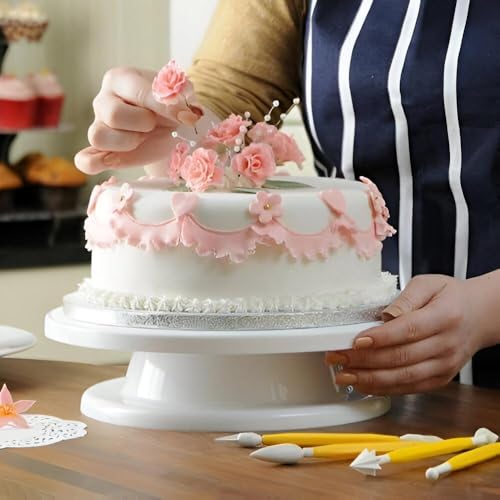 Generic - حامل تزيين الكيك - قم بتحويل مهارات الخبز الخاصة بك باستخدام حامل الكيك الدوار مقاس 10 بوصة، والذي يتميز بأدوات التزيين الأساسية والمنعمات لتزيين الكيك على المستوى الاحترافي في المنزل!