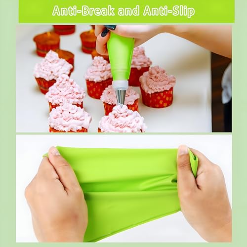 - تم تصميم أكياس المعجنات المصنوعة من السيليكون مقاس 12 انش من مادة سميكة تضمن المتانة، مما يجعلها مثالية للتعامل مع الخلطات السميكة مثل عجينة البسكويت. يوفر سطحها المضاد للانزلاق قبضة مريحة، مما يسمح بتحكم أفضل أثناء التزيين.