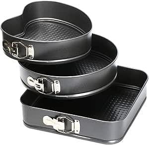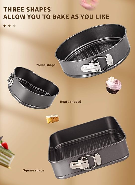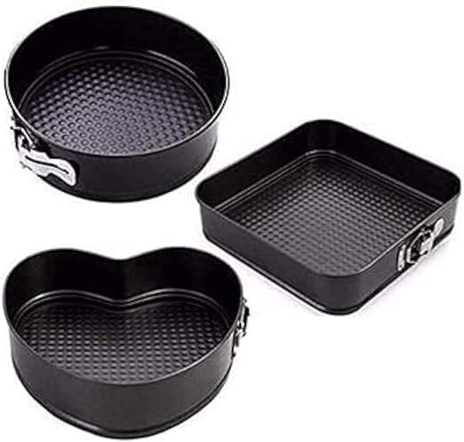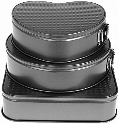 - محتوى المجموعة: طقم من 3 صواني كيك بأشكال مختلفة تشمل شكل قلب ودائري ومربع لتلبية احتياجات الخبز المتنوعة