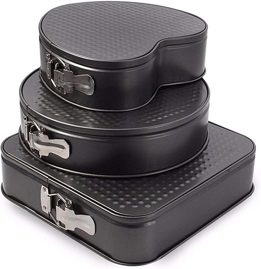 Generic - طقم صواني كيك 3 قطع بأشكال مختلفة، فولاذ كربوني غير لاصق، قلب ودائري ومربع، أسود، آمن للفرن والميكروويف والفريزر، مقاوم للحرارة حتى 232 درجة مئوية