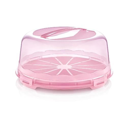 Generic - علبة دائرية مع غطاء محكم الإغلاق بلاستيكية خالية من مادة البيسفينول أ وآمنة للطعام لتخزين الكيكة ونقل شرائح الكيك وغيرها من الأطعمة، متعدد الألوان، 32 × 14 سم
