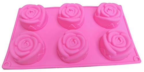 Other - قالب كيك سيلكون شكل وردة 6عين لون زهرى