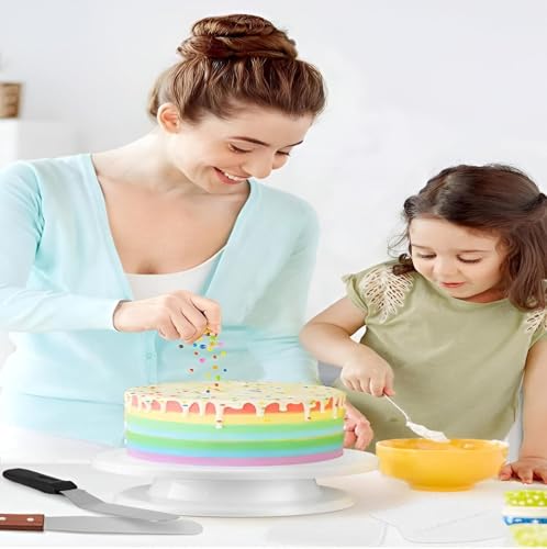 - يدور الحامل بسلاسة في كل من اتجاه عقارب الساعة وعكس اتجاه عقارب الساعة، مما يوفر تنوعًا لتحقيق تصميمات معقدة ولمسات نهائية جميلة على الكعك، بغض النظر عن تعقيد الديكور.