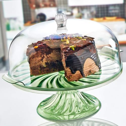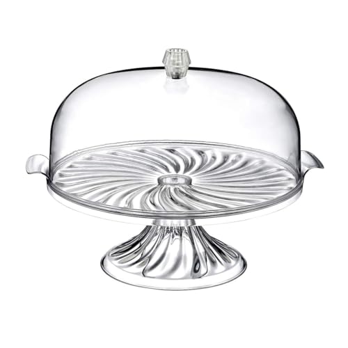 MERWY - حامل كيك مع قبة شفافة تشبه القبة حاويات بلاستيكية كبيرة صندوق بلاستيكي بغطاء لتخزين الكيك وكب طعام خالي من البيسفينول ايه شفاف كريستال