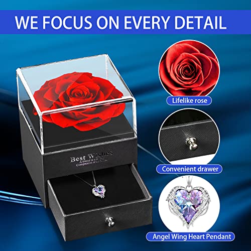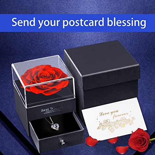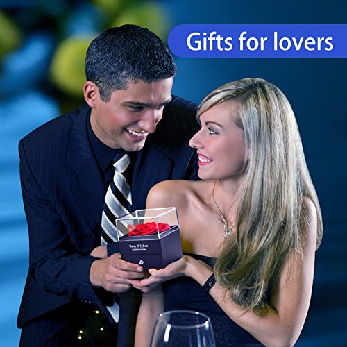 Cakucaku - مجموعة هدايا من سلسلة بتصمبم Love You في علبة مزينة بوردة طبيعية محفوظة كاكوكاكو زهرة حقيقية ساحرة لعيد الحب وعيد الام والذكرى السنوية والزفاف الميلاد الشكر والكريسماس للنساء أحمر