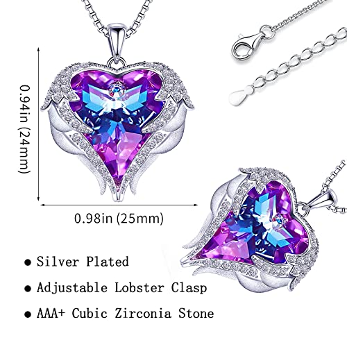 - <p>💖 </p>قلادة رائعة: قلادة قلب جناح الملاك مصنوعة من الفضة النقية عيار 925، بدون رصاص أو نيكل، لا تسبب الحساسية ومريحة في الارتداء. محشو بحجر زركونيا مكعب ايه ايه ايه بلس مقطوع بدقة وكريستال صناعي يتميز بمظهر مذهل للألماس الحقيقي. السلسلة مقاس 17 انش مناسبة لكل امرأة تقريبًا، إنها اختيار مثالي كهدية لهن.