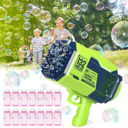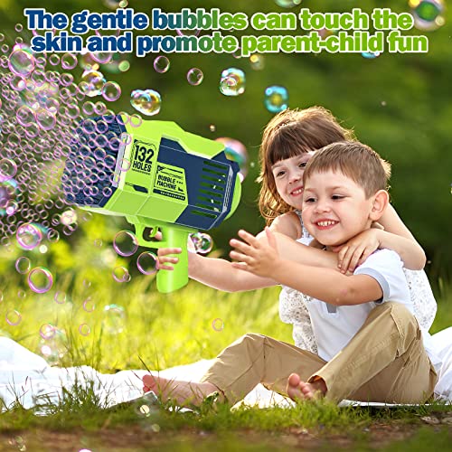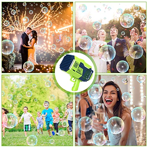 Calabash Brothers - مسدس بازوكا فقاعات مطور بـ132 فتحة مع ضوء ملون، مناسب للأطفال والبالغين في الأماكن المغلقة والمفتوحة وحفلات أعياد الميلاد والزفاف (أخضر)