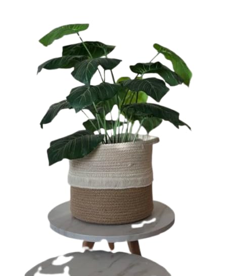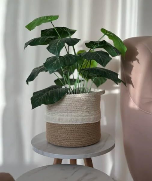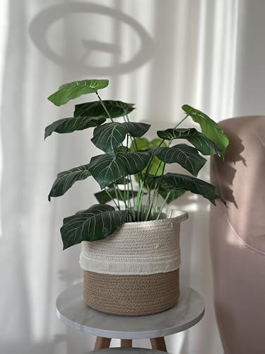 Generic - سلة نباتات بحبل، غطاء وعاء نبات من القطن المنسوج بلونين، سلة زخرفية داخلية لغرفة المعيشة، غرفة النوم والمكتب، أبيض عاجي وبيج من كالدا بوهو، 20×20 سم