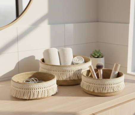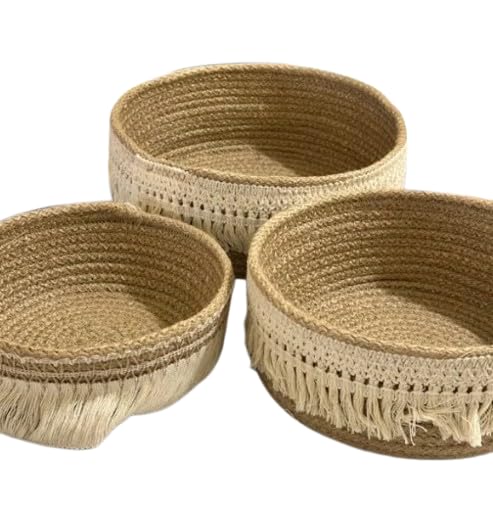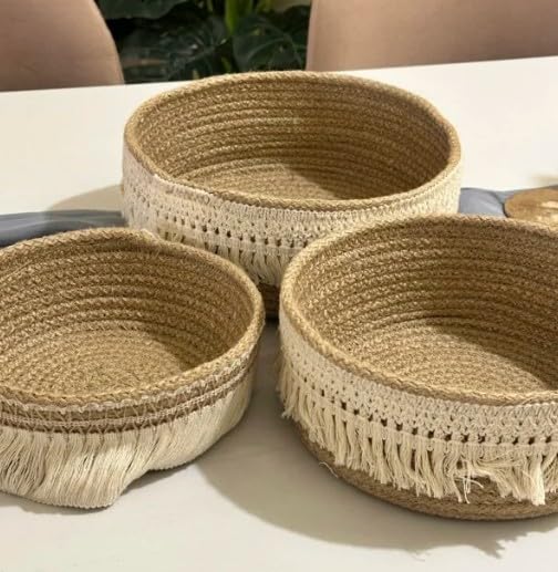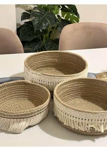 Generic - مجموعة سلال تخزين من حبال قطن مكرمية من كالدا - سلال متداخلة منسوجة يدويا مع شراشيب بوهو، منظم مستوحى من مستحضرات التجميل والاكسسوارات وديكور المنزل