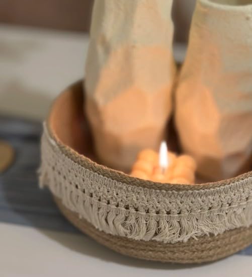 - صناعة يدوية: كل سلة مصنوعة يدويًا بعناية من مادة حبل قطنية متينة، مما يضمن بنية عالية الجودة وشخصية حرفية فريدة