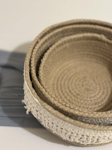 - مجموعة من 3 سلال متداخلة: سلال تخزين مصنوعة من حبال قطنية مكرمية منسوجة يدويًا بثلاثة أحجام متدرجة تتداخل معًا للتخزين المريح عند عدم الاستخدام