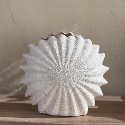 Generic - مزهرية مزخرفة على شكل صدفة من كالدا - فخار منحوت يدويا بتصميم دائري مضلع فريد من نوعه مع نسيج حجري، مزهرية فخارية فاخرة لغرفة المعيشة العصرية وديكور المكتب