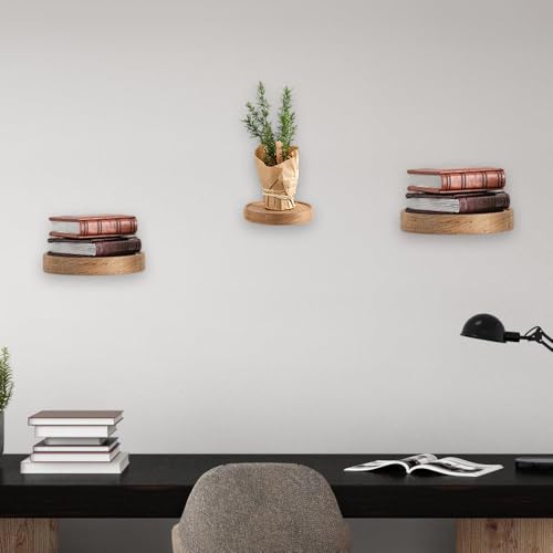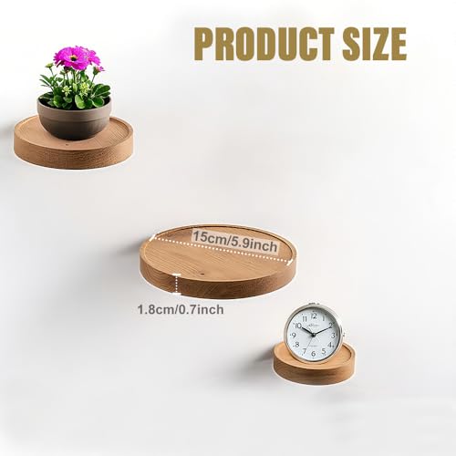 Calenxy - مجموعة ارفف عائمة من كالينكسي مكونة من 3 ارفف حائط، دائرية، قطر 15 سم، ارفف عائمة، ارفف خشبية، ارفف حائط مزخرفة، ارفف معلقة، ارفف نباتات، ارفف خشبية، ارفف من خشب الزان