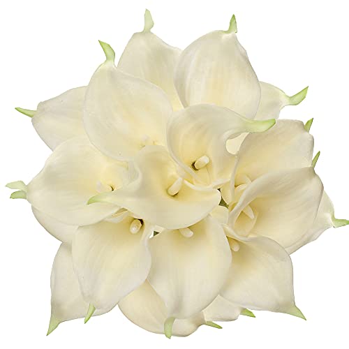 DILATATA - زهور زنبق صناعية بملمس حقيقي من كالا، زهور زنبق مزيفة للديكور كالا ليليز، زهور الربيع الاصطناعية، زهور نمر ليلي كالا، باقة زنبق كالا لديكور المنزل وحفلات الزفاف، لون كريمي، من ديلتاتا، عدد القطع: 10