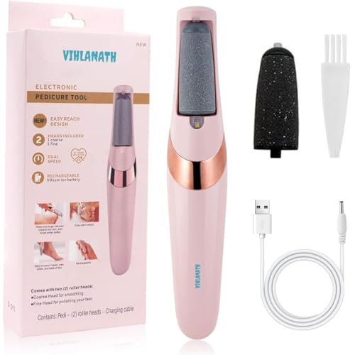VIHLANATH - جهاز باديكير لإزالة الجلد الميت قابل لإعادة الشحن، أداة دوارة لإزالة الجلد الميت والجاف والعناية بالقدمين، وردي