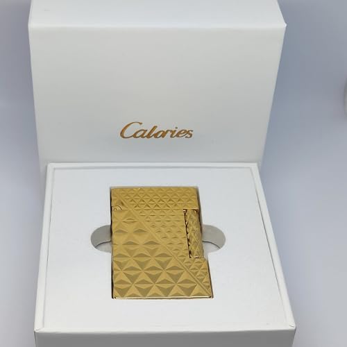 Calories - ولاعة غاز السعرات الحرارية، ولاعة كلاسيكية ممتعة، ولاعة بوتان، ولاعة ميكانيكية، صوت دوبونت، انيقة، هدية راقية (حجر معدني ذهبي ال اس)