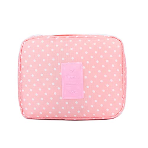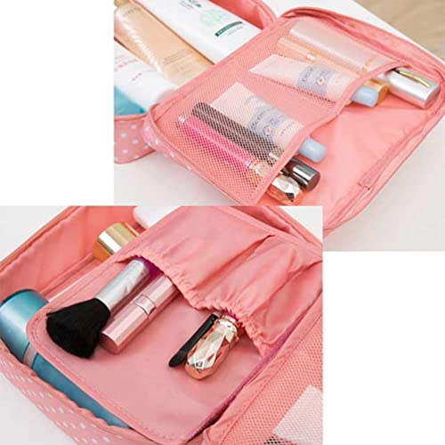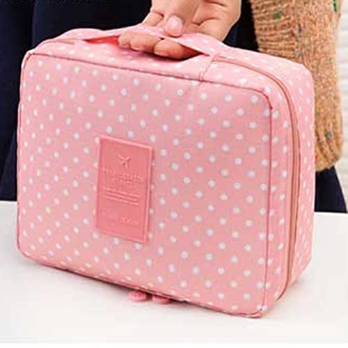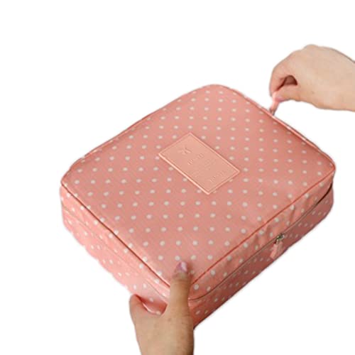 CalorMixs - شنطة تنظيم وتخزين مستحضرات التجميل وادوات الزينة والمكياج متعددة الوظائف ومحمولة ومزينة بطبعة للسفر والحمام، مناسبة للنساء والفتيات، من كالورميكس (وردي منقط)