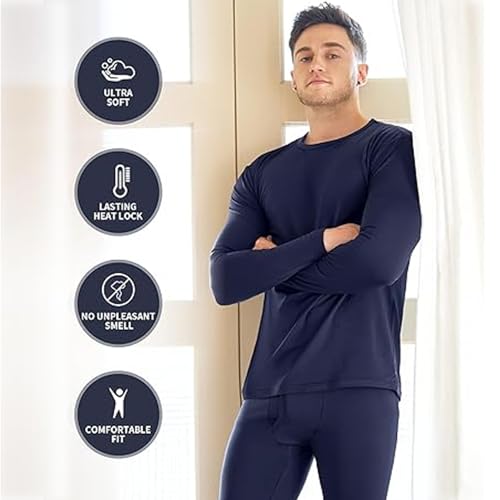 Generic - طقم ملابس داخلية حرارية للرجال من كالسون مكون من بنطلون وتيشيرت دايس (عبوة واحدة، مقاس XXL، لون كحلي)