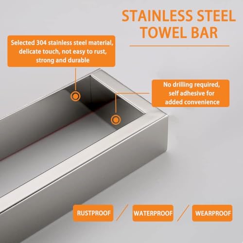 - المواد: قضيب المنشفة مصنوع من الستانلس ستيل، مع لمسة نهائية مصقولة عاكسة، يحمي من التآكل والصدأ، ويمكنه دائمًا الصمود جيدًا لفترة طويلة. لا تقلق من سقوطه من الحائط.