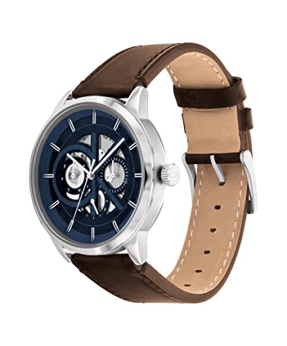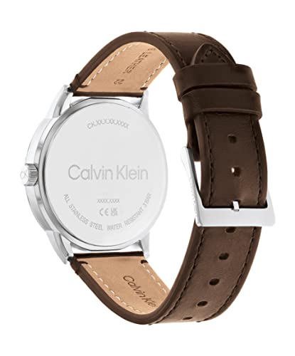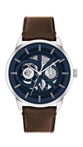 Calvin Klein - ساعة مودرن سكيليتون من كالفن كلاين، بمينا أزرق وسوار جلد بني للرجال، 25200216