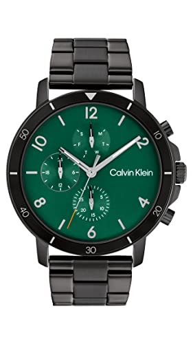 Calvin Klein - ساعة غوج سبورت من كالفن كلاين للرجال بمينا اخضر وسوار ستانلس ستيل اسود مطلي ايونيا - 25200069, أخضر، انالوج
