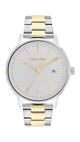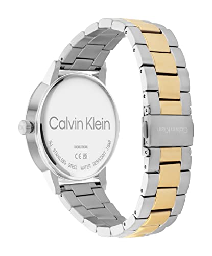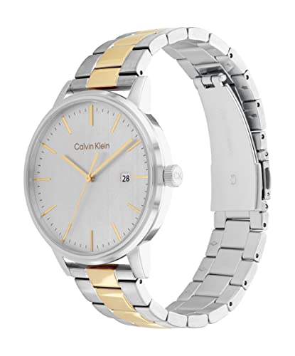 Calvin Klein - سوار للرجال موصول بمينا ابيض فضي مع ساعة يد من ستانلس ستيل بلونين- 25200055 كالفين كلاين أبيض انالوج