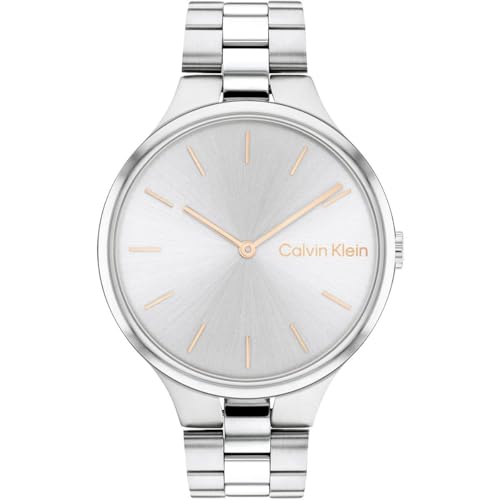 Calvin Klein - ساعة يد مقاس 36 ملم للنساء بمينا فضي وسوار حلقي من الستانلس ستيل كالفين كلاين - موديل 25200128 انالوج