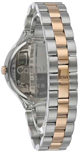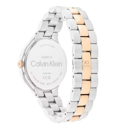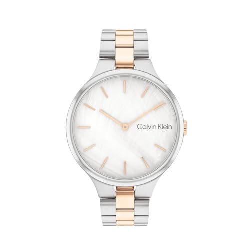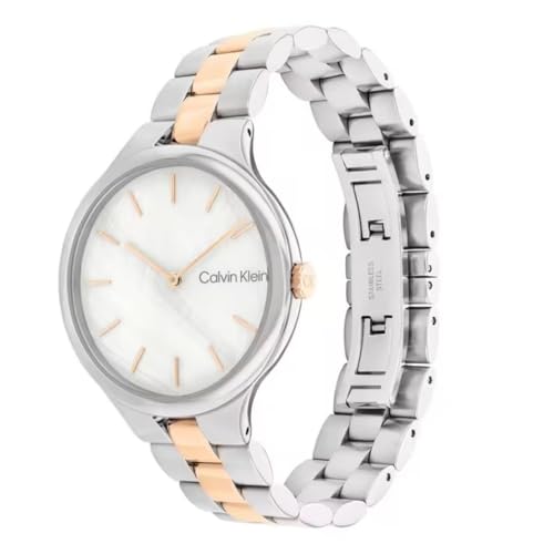 Calvin Klein - كالفن كلاين ساعة للنساء بمينا ابيض من عرق اللؤلؤ وسوار الستانلس ستيل بلونين - 25200428 تناظري