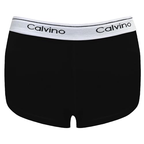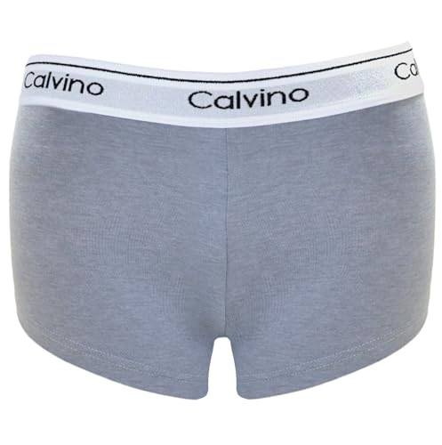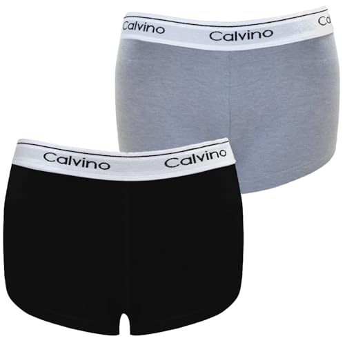 Calvino - طقم بوكسر من قطن للنساء كالفينو مكون قطعتين لون أسود ورمادي فاتح مقاس 2XL