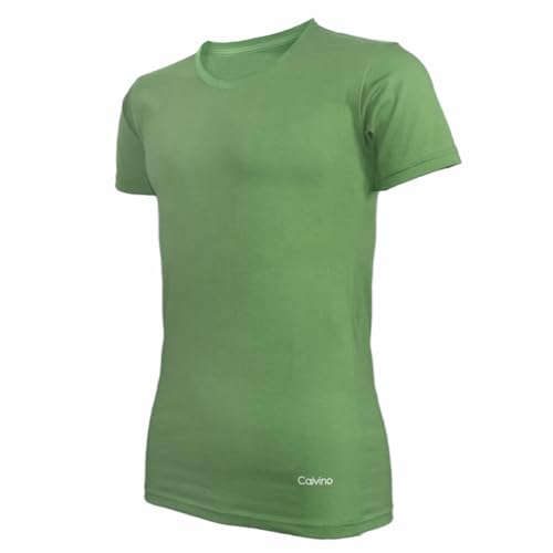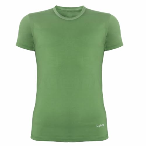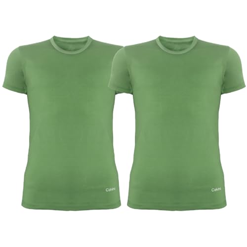 Calvino - طقم فانلة داخلية نصف كم برقبة دائرية وقصة ضيقة سليم فت للرجال من كالفينو من قطعتين، قطعة أساسية، (عبوة من قطعة واحدة)
