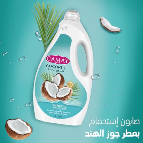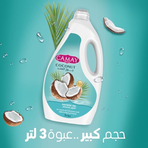 Camay - جل استحمام بالجليسرين وجوز الهند لبشرة أكثر نعومة ورائحة عطرة من كاماي، 3 لتر