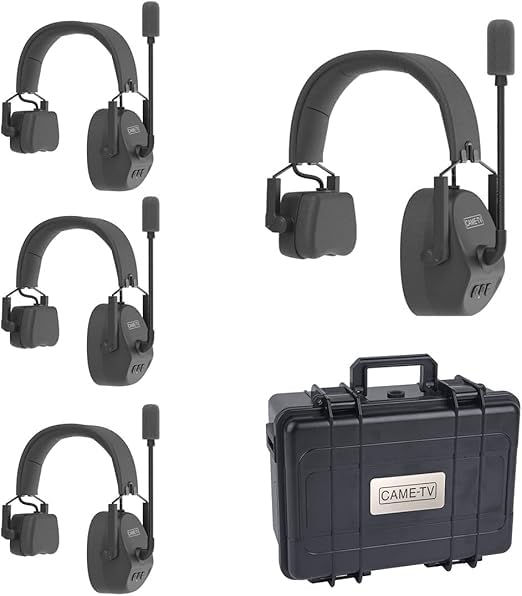 cametv - مجموعة سماعات رأس كيت تي في من 4 قطع كومينيك- 3 أذن فردية وقطعة اذن مزدوجة لاسلكي أسود