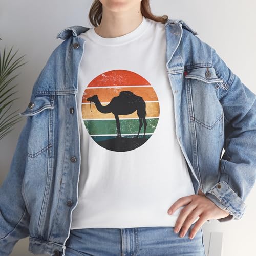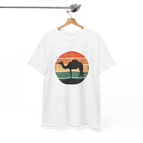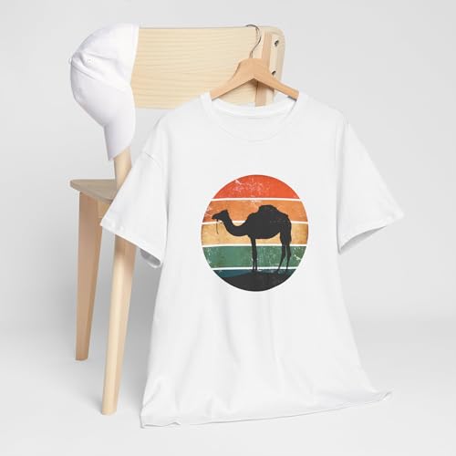 Generic - تيشيرت مطبوع عليه تيشيرت جمل برسمة غروب الشمس تصميم بدوي عربي بستايل رجعي - هدية لعشاق الصحراء