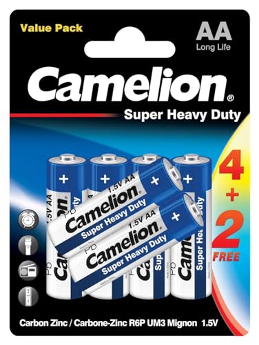 Camelion - بطاريات زنك وكربون شديدة التحمل من نوع ايه ايه ايه من كاميليون، 4 قطع + قطعتان