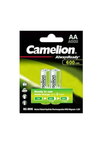 Camelion - بطاريتان ايه ايه قابلة لإعادة الشحن - 600 مللي أمبير في الساعة من كاميليون