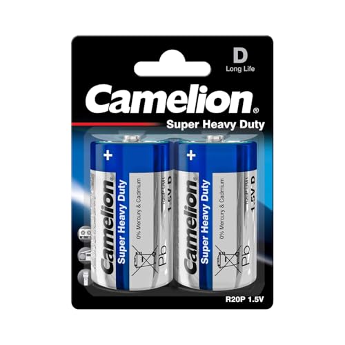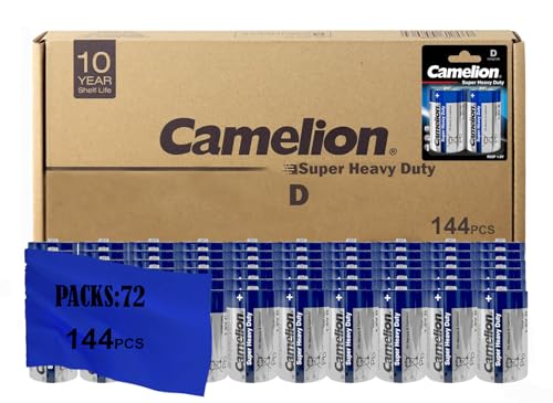Camelion - بطارية سوبر هيفي ديوتي أحادية، 1.5 فولت، نوع D/R20، عبوة مكونة من 2 قطعة وعبوة من 72 قطعة، من كاميليون