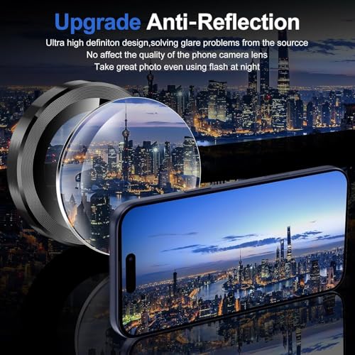 Whats Mob - اطار عدسة كاميرا زجاجي معدني متوافق مع ايفون 17 برو ماكس/ 17 برو - شفاف HD ومقاوم للخدش ومضاد للصدمات ومناسب للجراب (ازرق داكن)