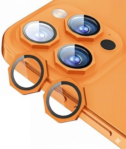 Generic - واقي عدسة كاميرا زجاجي متوافق مع آيفون 17 برو ماكس / 17 برو بتصميم سداسي وتقنية مقاومة الانعكاس مع دعم التركيز التلقائي واقي حلقة كاميرا من زجاج مقوى بدرجة صلابة 9H مقاوم للخدش والصدمات (برتقالي)