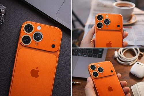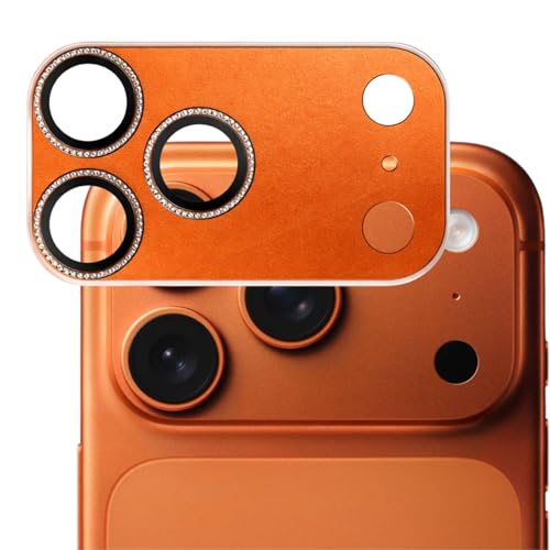 Whats Mob - واقي عدسة الكاميرا متوافق مع ايفون 17 برو ماكس - زجاج ماسي لامع بالكامل، اطار معدني لامع (برتقالي)