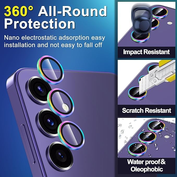 ELMO3EZZ - واقي عدسة الكاميرا متوافق مع سامسونج جالاكسي S25، غطاء حلقي من خليط معدني من الألومنيوم والزجاج المقوى بدرجة صلابة 9، حماية فائقة لمقاومة الصدمات (متعدد الألوان)