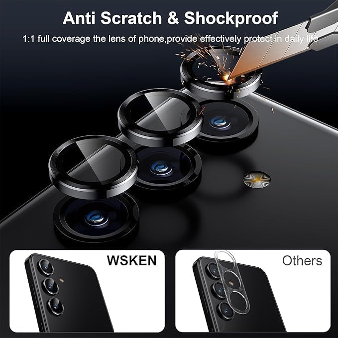 Generic - واقي عدسة الكاميرا متوافق مع سامسونج جالاكسي A55 / A35 من الزجاج المقوى بدرجة صلابة 9H ورفيعة للغاية من خليط معدني من الالومنيوم لحماية الشاشة، اسود