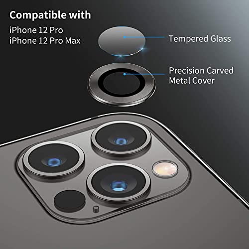 Generic - واقي لعدسات الكاميرا لموبايل ايفون 13 و13 برو و13 ماكس وايفون13 ميني اسود من زجاج مقوي اتش دي مزود بحلقة معدنية مصنوعة خليط الالومنيوم متعدد الالوان