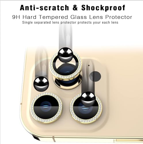 ELMO3EZZ - واقي عدسة الكاميرا لموبايل آيفون 13 برو HD مصنوع من الزجاج المقوى الشفاف ومقاوم للخدش ومتوافق مع الجراب (ذهبي)