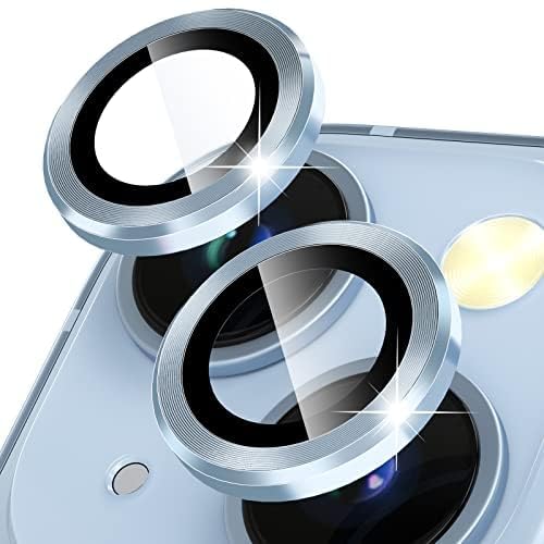 ELMO3EZZ - واقي عدسة كاميرا من المعز لموبايل ايفون 14 (6.1 بوصة) وايفون 14 بلس (6.7 بوصة)، غطاء كاميرا بحلقة معدنية من الزجاج المقوى بدرجة صلابة 9 ومناسب للاستخدام مع الجراب مضاد للخدش وعالي الوضوح، أزرق