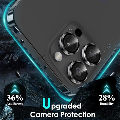 ELMO3EZZ - واقي عدسة الكاميرا لموبايل آيفون 15 برو/ايفون 15 برو ماكس، [صينية تركيب بخطوة واحدة] غطاء كاميرا فردي HD من الزجاج المقوى، إكسسوارات واقية للشاشة صديقة للجرابات، لون أسود