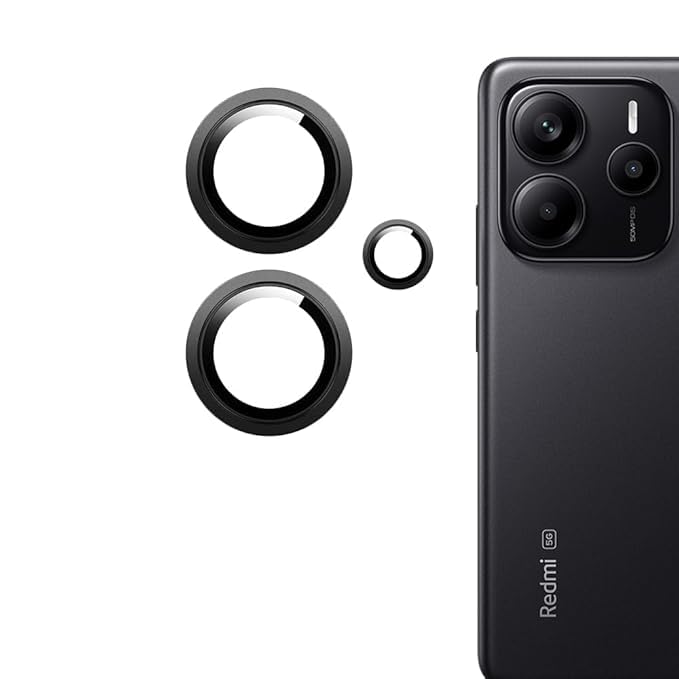 Generic - واقي عدسة كاميرا من الزجاج المقوى بدرجة صلابة 9 مزود بحلقة فردية من المعدن مناسب للجراب ومضاد للخدش لموبايل ريدمي 13 نوت، لون أسود