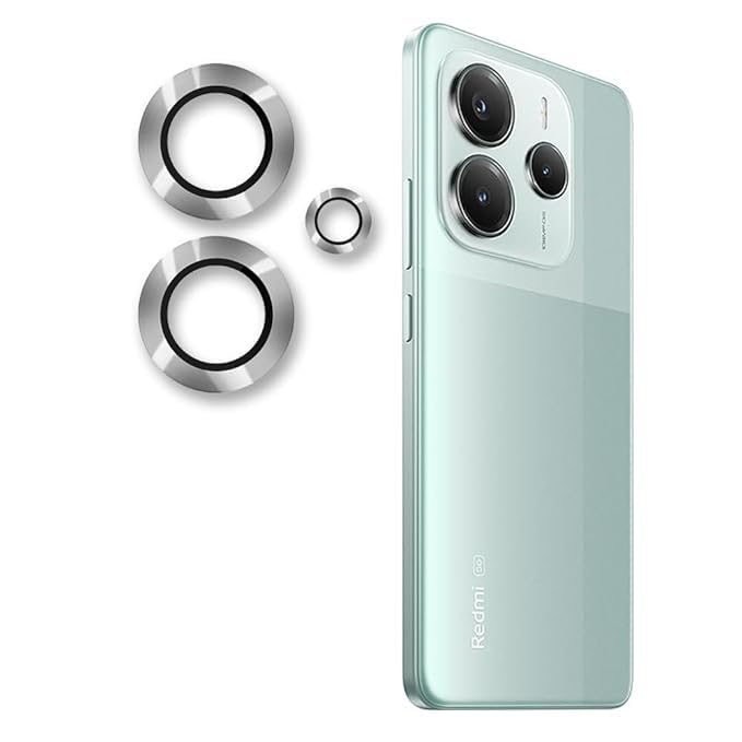 Generic - واقي عدسة كاميرا من الزجاج المقوى بدرجة صلابة 9 مزود بحلقة فردية من المعدن مناسب للجراب ومضاد للخدش لموبايل ريدمي نوت 14، فضي