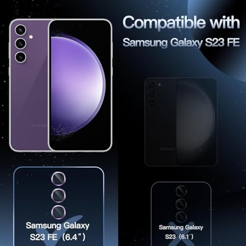 GENERIC - واقي عدسة الكاميرا لموبايل سامسونج جالاكسي S23 FE 6.4 بوصة، غطاء حلقي معدني من الزجاج المقوى بدرجة صلابة 9، شفاف HD، مجموعة واحدة (ارجواني)