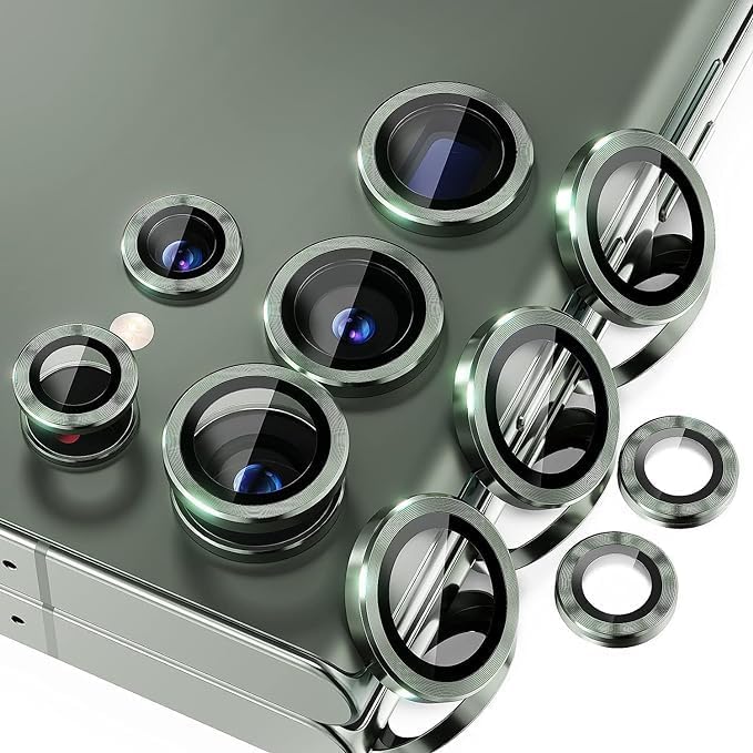 Generic - واقي عدسة كاميرا متوافق مع سامسونج جالاكسي S23 الترا شبكة الجيل الخامس 5G شاشة من الزجاج المقوى غطاء حلقة معدنية فردية لاكسسوارات S23 أخضر