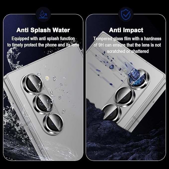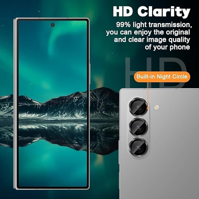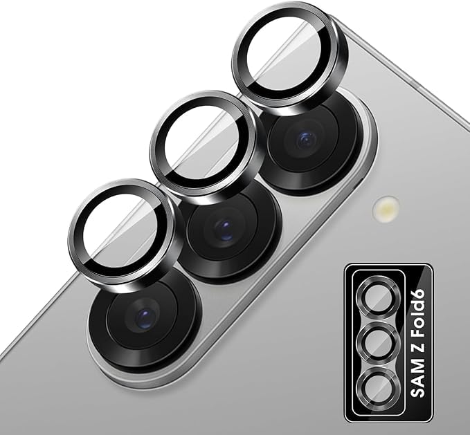 Generic - واقي عدسة كاميرا لموبايل سامسونج جالاكسي Z فولد 6 مع حلقة معدنية وشاشة حماية من الزجاج المقوى لحماية كاملة التغطية، فضي